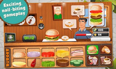 ✔Super fast gameplay – Make burgers with as many as six layers at a time for customers and serve them side orders, all in less than 90 seconds.